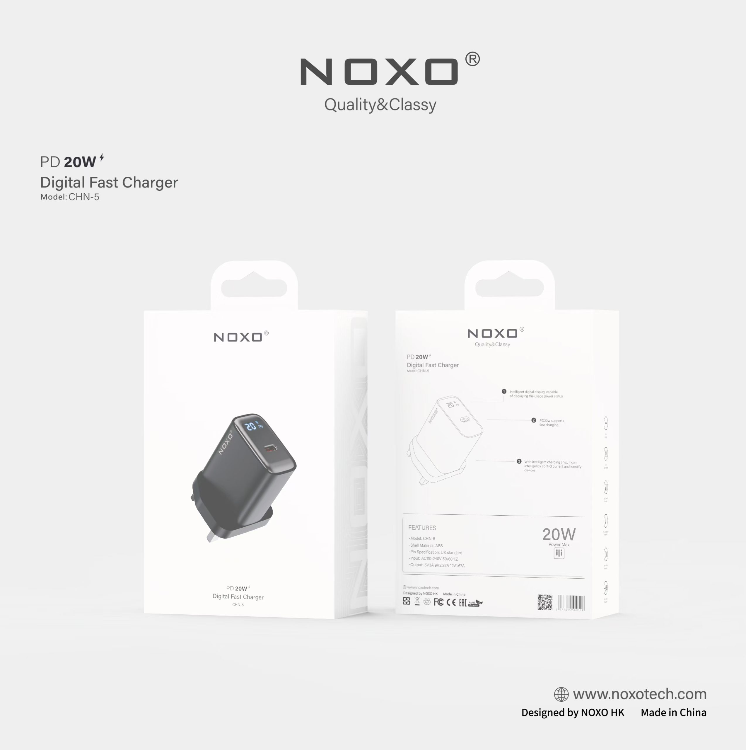 CHN-5 PD 20W Digital Display Fast Charger UK Pin