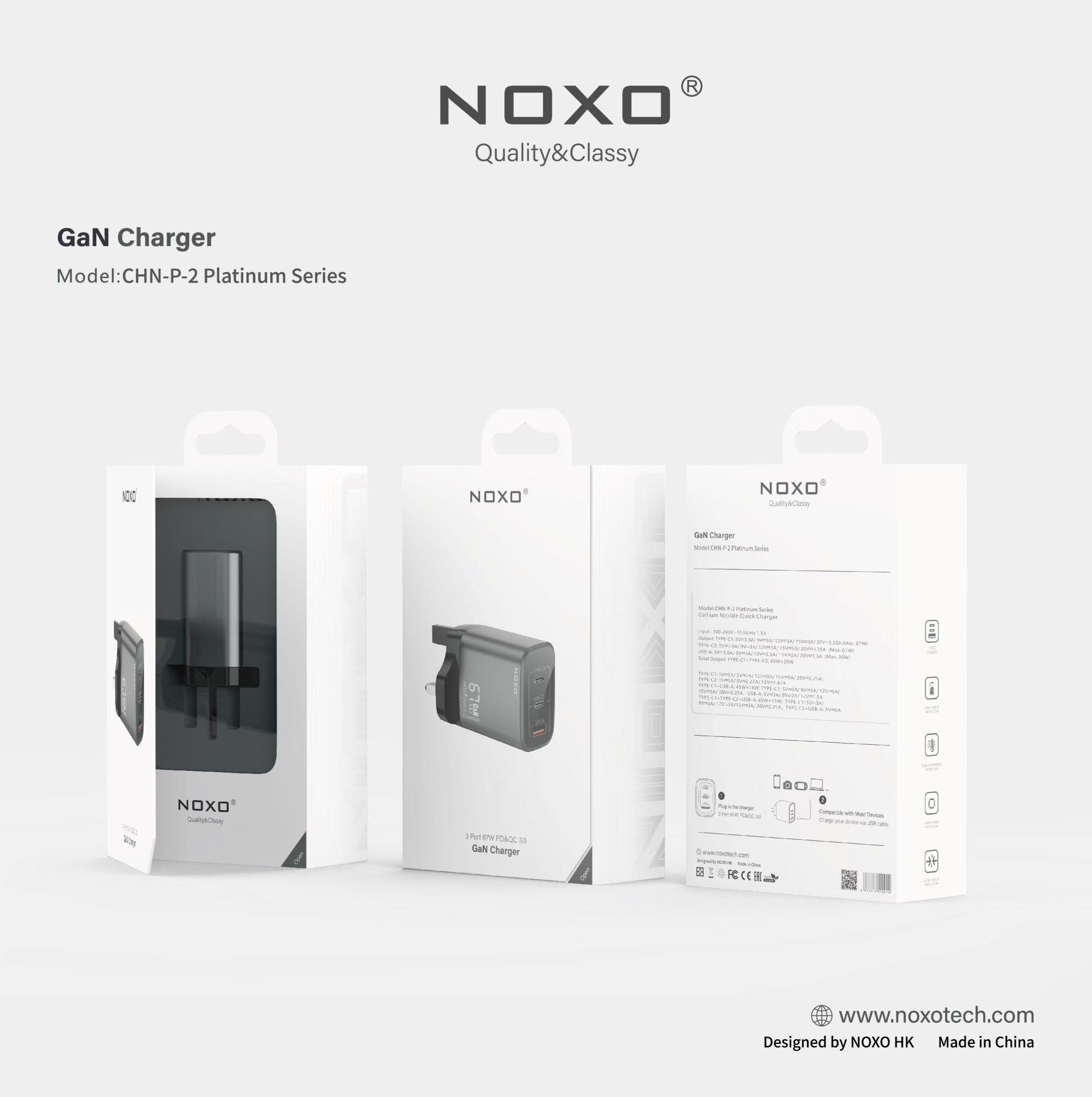 CHN-P-2 67W 3Ports PD&QC3.0 GAN Charger UK Pin